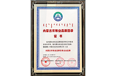 安達(dá)鳳鳥入選內(nèi)蒙古農(nóng)牧業(yè)品牌名錄