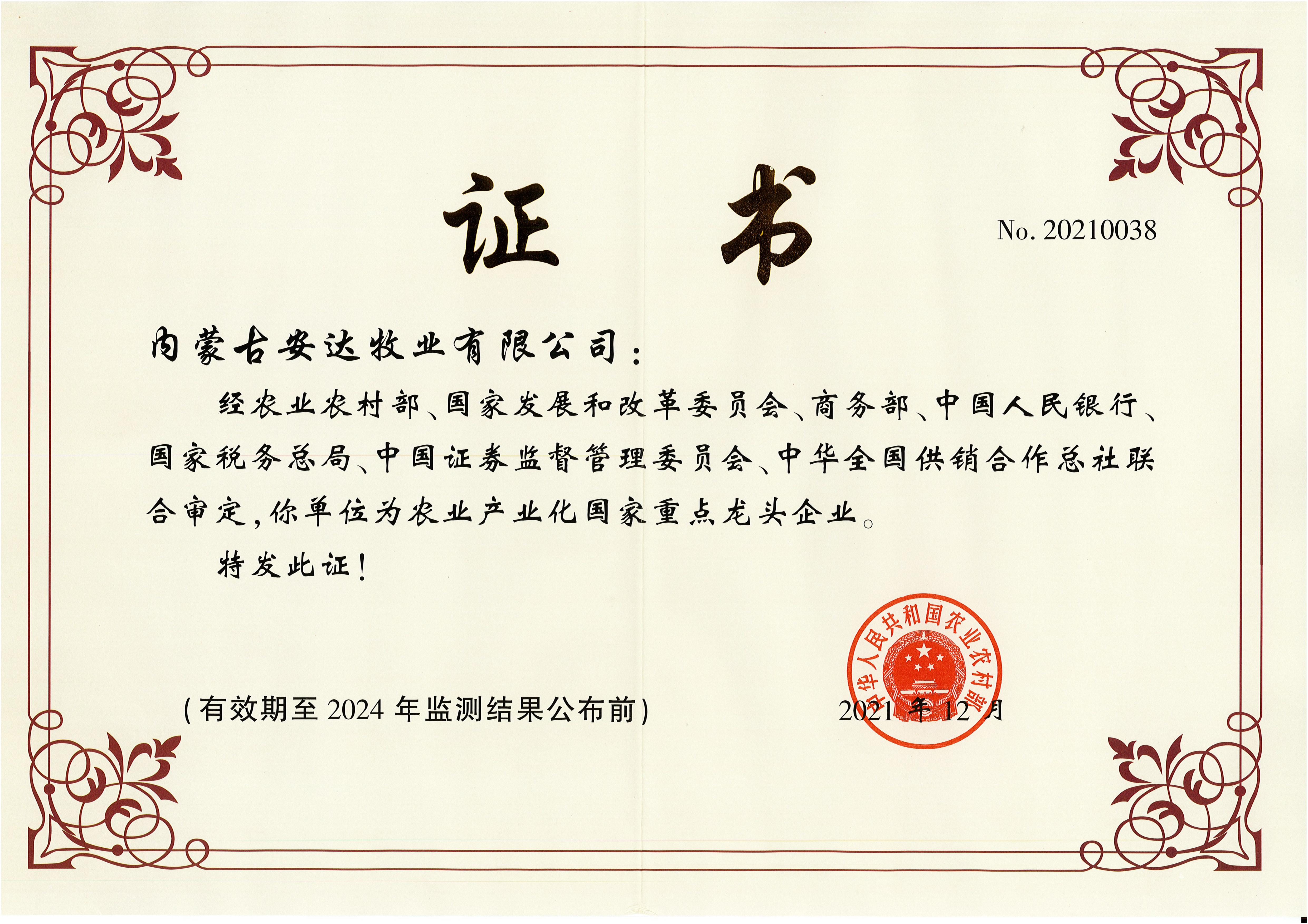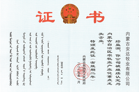 內(nèi)蒙古自治區(qū)農(nóng)牧業(yè)產(chǎn)業(yè)化重點龍頭企業(yè)(有效期兩年)