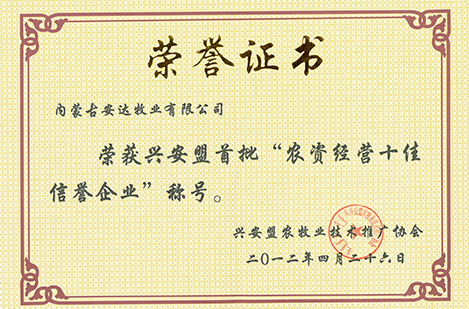 興安盟首批“農(nóng)資經(jīng)營十佳信譽企業(yè)”